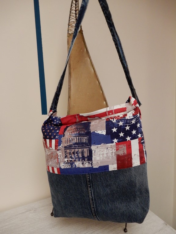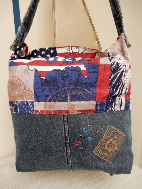 Sac bandouillère en jeans et tissu imprimé