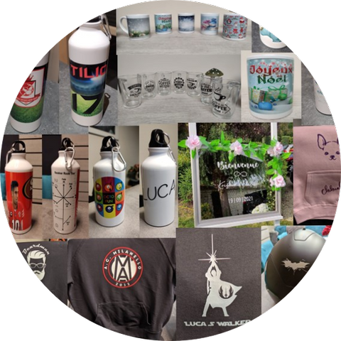 Flocage textile et différents supports (miroir, vaisselle, casque ...), impression par sublimation sur polyester et différents supports (tasse, gourde ...). Vous avez un projet et désirez un devis, envoyez votre demande à Mademoiselle Coquette.