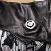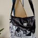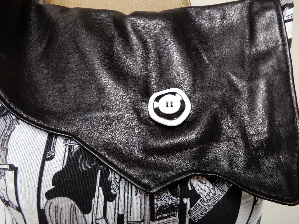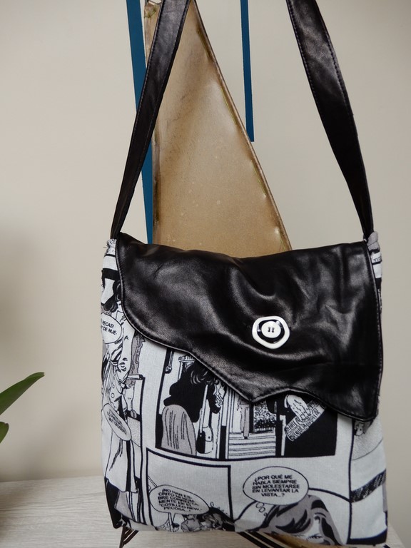Sac bandouillère en tissu imprimé et rabat en cuir véritable noir