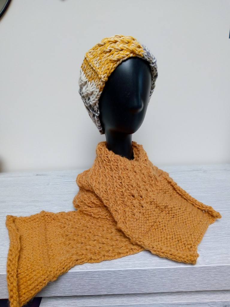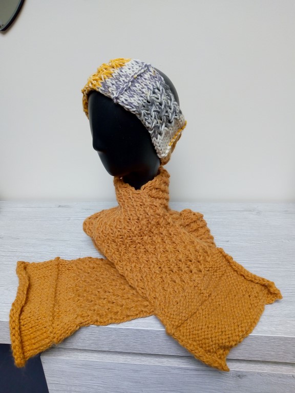Ensemble en lainage écharpe et bandeau ou bonnet